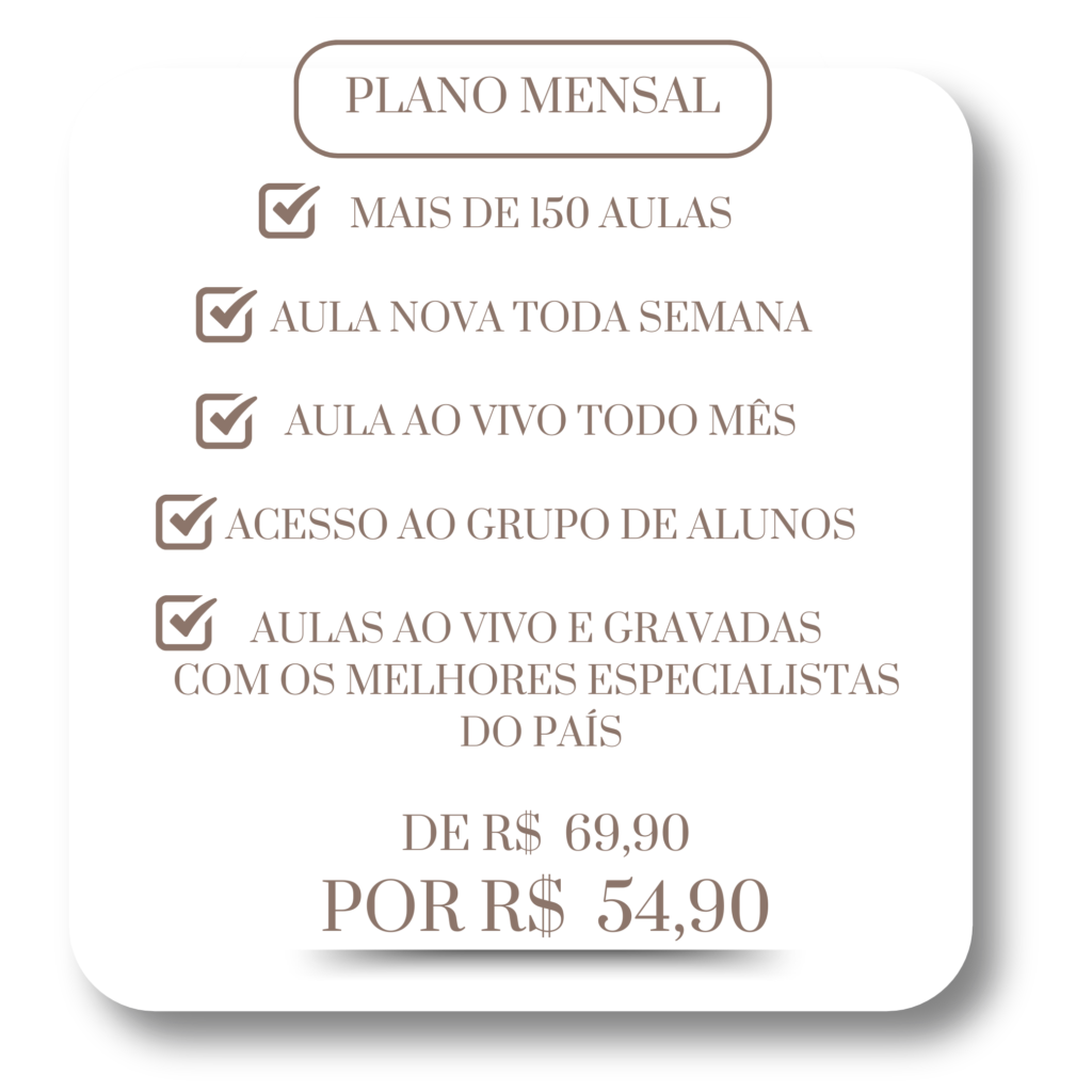 Minicursos mensais ao vivo, de até 2hs, com especialistas da área.